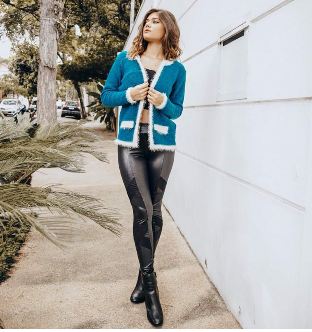 calça em poliamida skinny com detalhes nas laterais, somente na cor azul azul tiffany