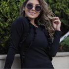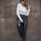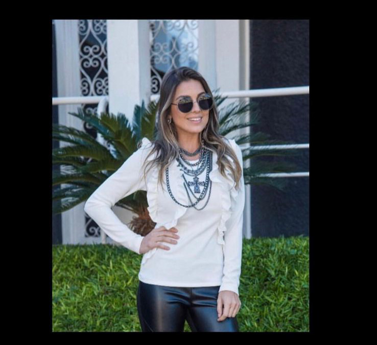 blusa manga longa, em crepe elastano detalhes em babados frntais