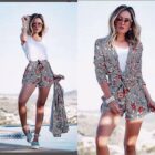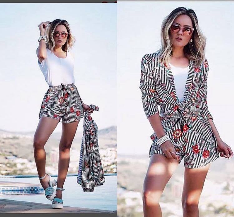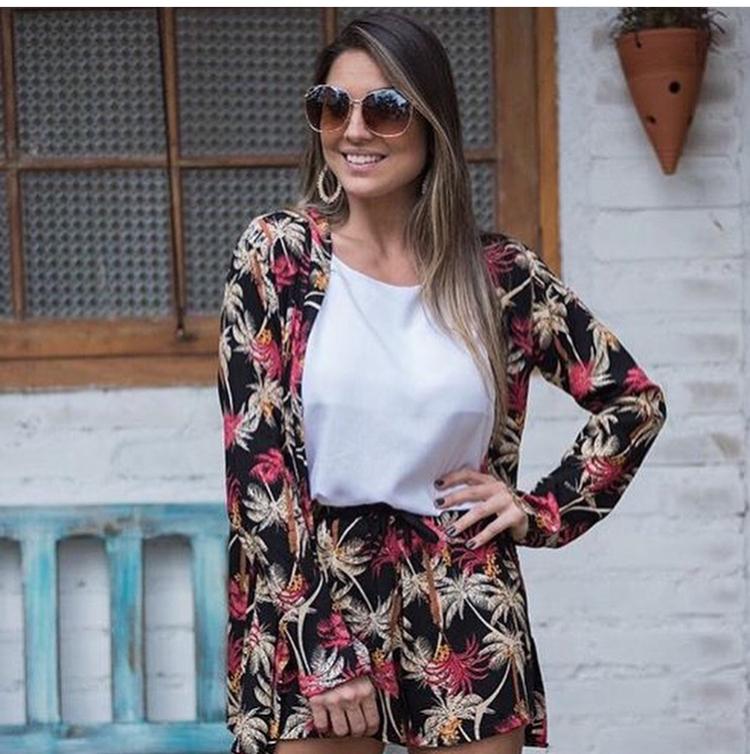 conjunto de kimono e short em viscose estampado