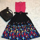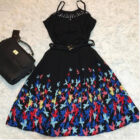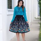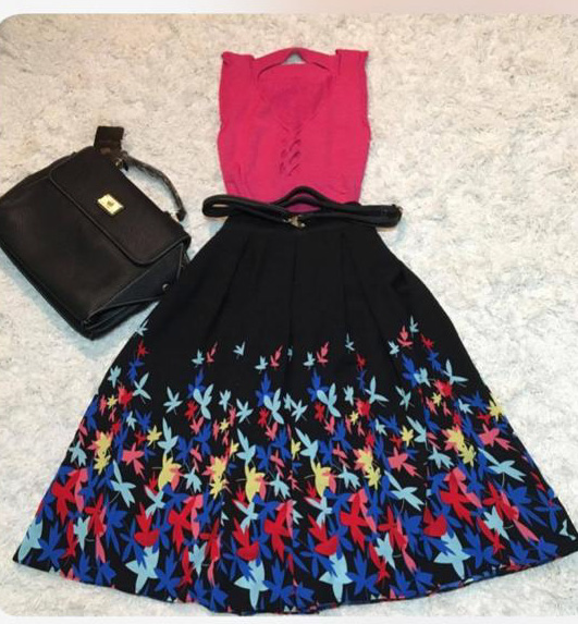 saia rodada em tecido crepe com estampas florais, fechamento em ziper