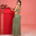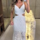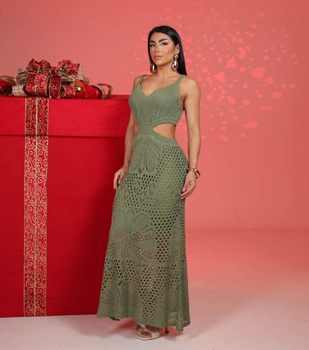 vestido longo tricot premium, forrado com detalhe nas costas em trama floral, fino acabamento